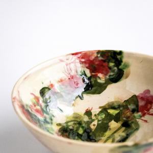 Céramiques colorées, décorées aux pinceaux, par trempages et aspersions. Emaillages transparents brillants, satinés et opaques. Décors non figuratifs. Recherche et expérimentations, travail évolutif. Décors aux oxydes, aux engobes et colorants céramiques, ou décors d’émaux aux oxydes.